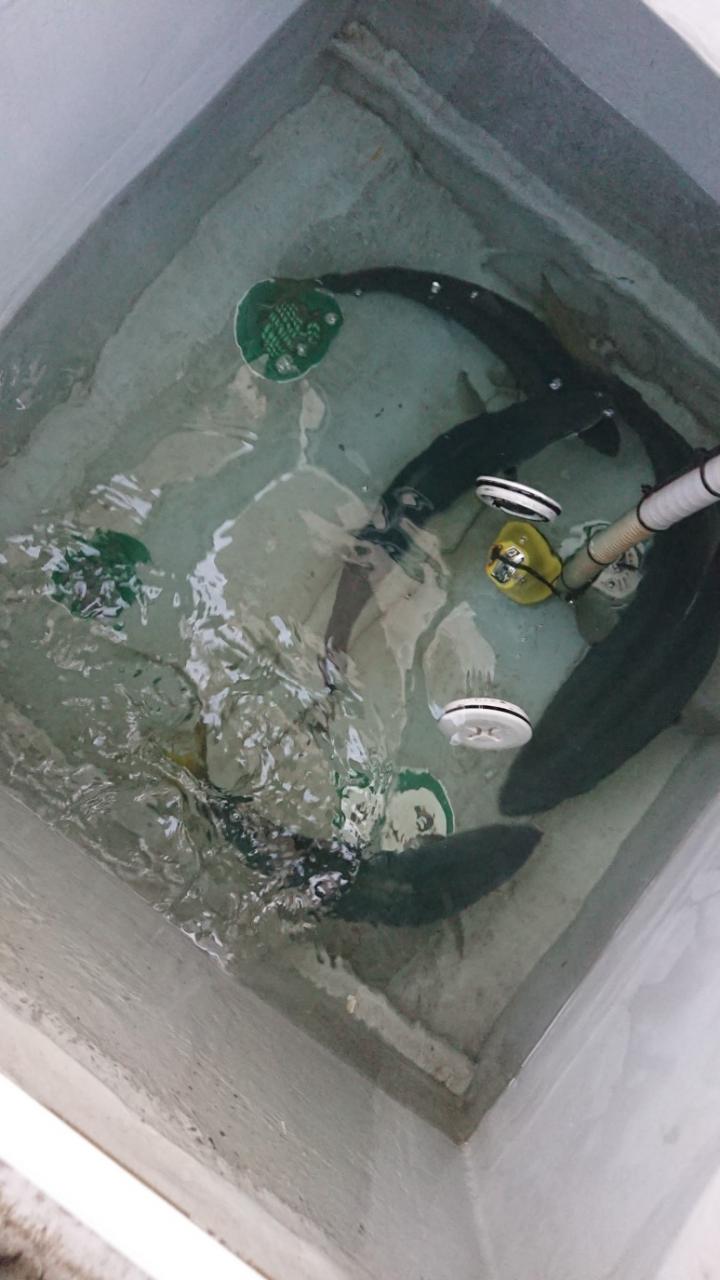 小魚が沸いていたので、サビッサビのルアー投げたら一撃シーバス!